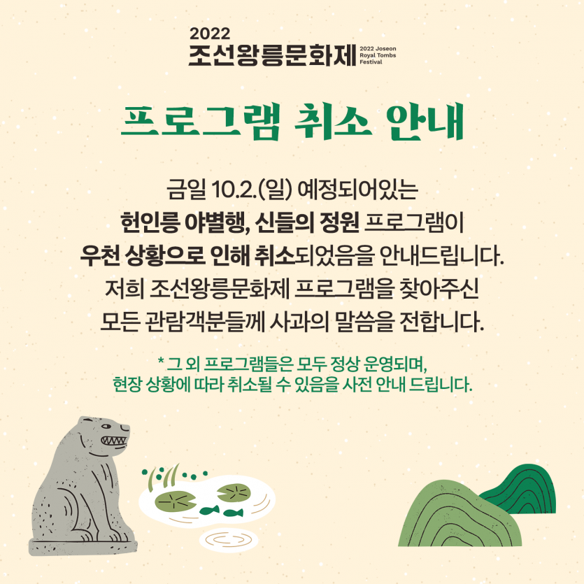 저희 조선왕릉문화제 프로그램을 찾아주신 모든 관람객분들께 사과의 말씀을 전합니다.