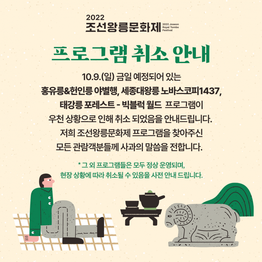 조선왕릉문화제 프로그램을 찾아주신 모든 관람객분들께 사과의 말씀을 전합니다.